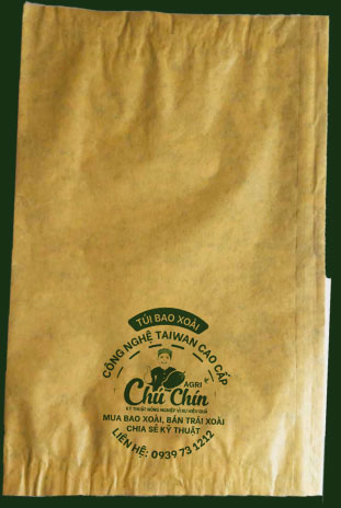Túi giấy 2 lớp, cách ly trái xoài với ánh sáng mặt trời nên cho ra quả xoài màu vàng.