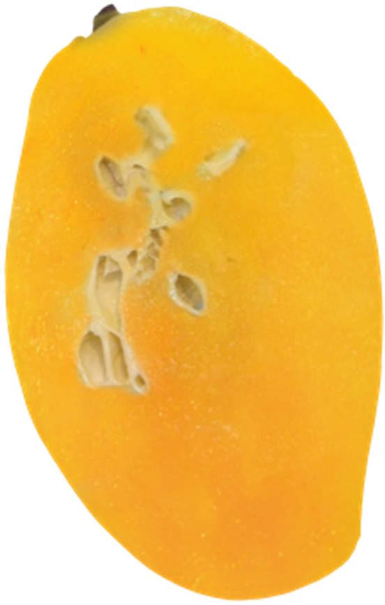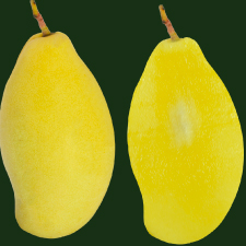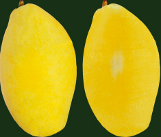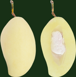 Khi sống: Vỏ màu vàng nhạt đồi mồi ít, mờ. Trái cứng, không thơm. Vị rất chua, thịt thơm, cơm xoài giòn rau ráu.