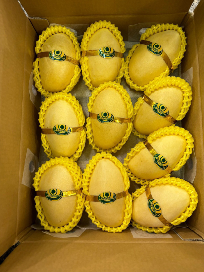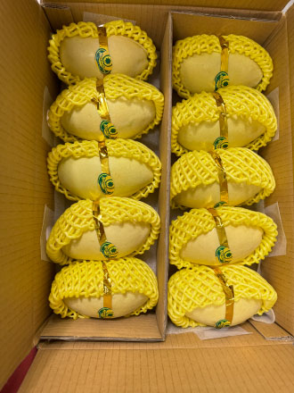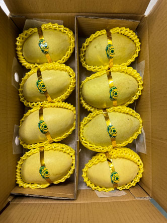 Nhờ kỹ thuật bao trái hiện đại, người nông dân làm ra được loại xoài da vàng.