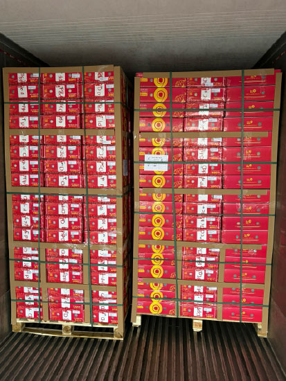 - Chất Pallet: 20 pallet, mỗi pallet chất được 144 thùng (tổng cont thùng, tổng 11.520kg)
